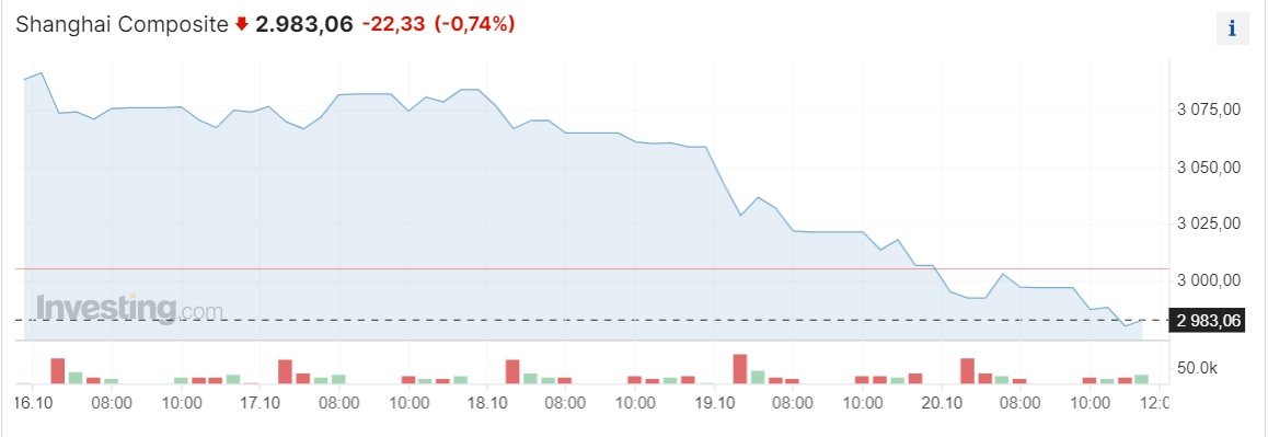 Шанхайский Shanghai Composite (SSEC) просел на -0,74% (-3,40% за неделю).