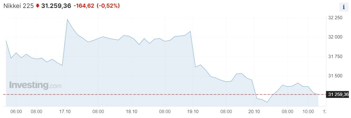 Японский Nikkei 225 (JP 225) потерял -0,52% (3,19% за неделю).