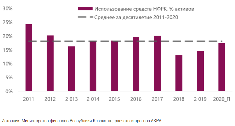 "Учитывая трансферт из НФРК в госбюджет, на конец 2020 года активы фонда, по оценкам АКРА, составят порядка 35% ВВП по сравнению с примерно 40% ВВП на конец 2019 года", – пишут аналитики.
