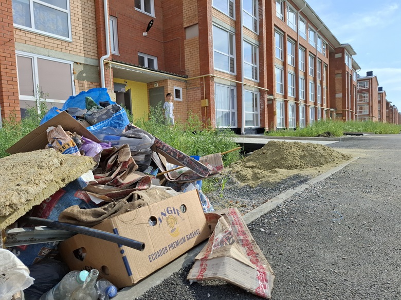 Однако по факту уже сегодня жителям нужны дворник и контейнеры для мусора. Ни того, ни другого нет. Подходы к подъездам заросли метровой травой, мусор отдельные личности складывают прямо под окнами.