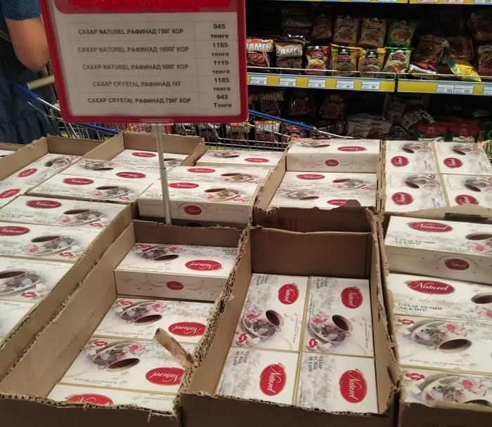 В Костанайской области за неделю цены на некоторые овощи почти не изменились, стабильную цену сохранило подсолнечное масло, а за сахаром, который продают в супермаркетах из стабилизационного фонда, выстраиваются очереди и продукт расхватывают за пару минут. Люди, узнав, что сахар фасуется к продаже, собираются в очередь и ждут товар по цене 450 тенге. В магазине у дома этот продукт есть, по цене, как и неделю назад – 730 тенге за кило. А в оптовых магазинах цена за мешок сахара весом 25 килограмм просили 10 тыс. тенге, но при покупке большой партии. Для человека, желавшего купить только один мешок сладкого продукта, называлась цена в 19 500 тенге. Хотя в управлении сельского хозяйства региона отмечают, что сахар в регион с завода поступает по графику и его отпускают в торговые точки.