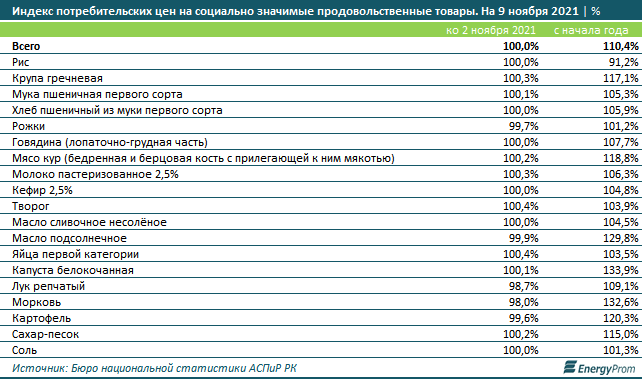 В ноябре текущего года рост цен на социально значимые продовольственные товары удалось остановить: за первую неделю месяца удорожания в целом по корзине не наблюдалось, передает inbusiness.kz со ссылкой на energyprom.kz.