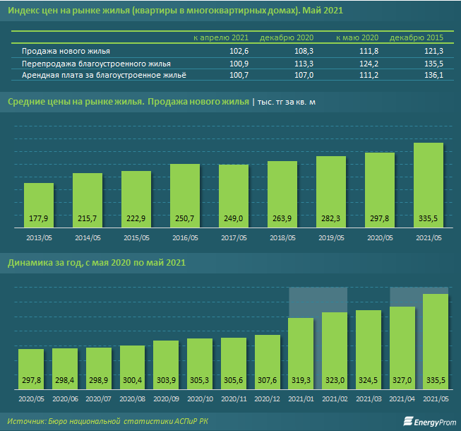Вслед за ростом цен на стройматериалы ожидаемо поползли вверх и цены на жилье. По итогам мая 2021-го стоимость квартир в новых домах за год выросла на 11,8%, во "вторичке" – сразу на 24,2%.