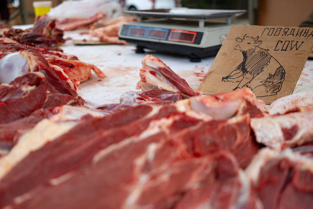 Килограмм говяжьей грудинки на ярмарке можно было купить за 4200 тенге, а за килограмм куриных окорочков торговцы просили 1600 тенге. Цена десятка куриных яиц 1-й категории составила 600 тенге.