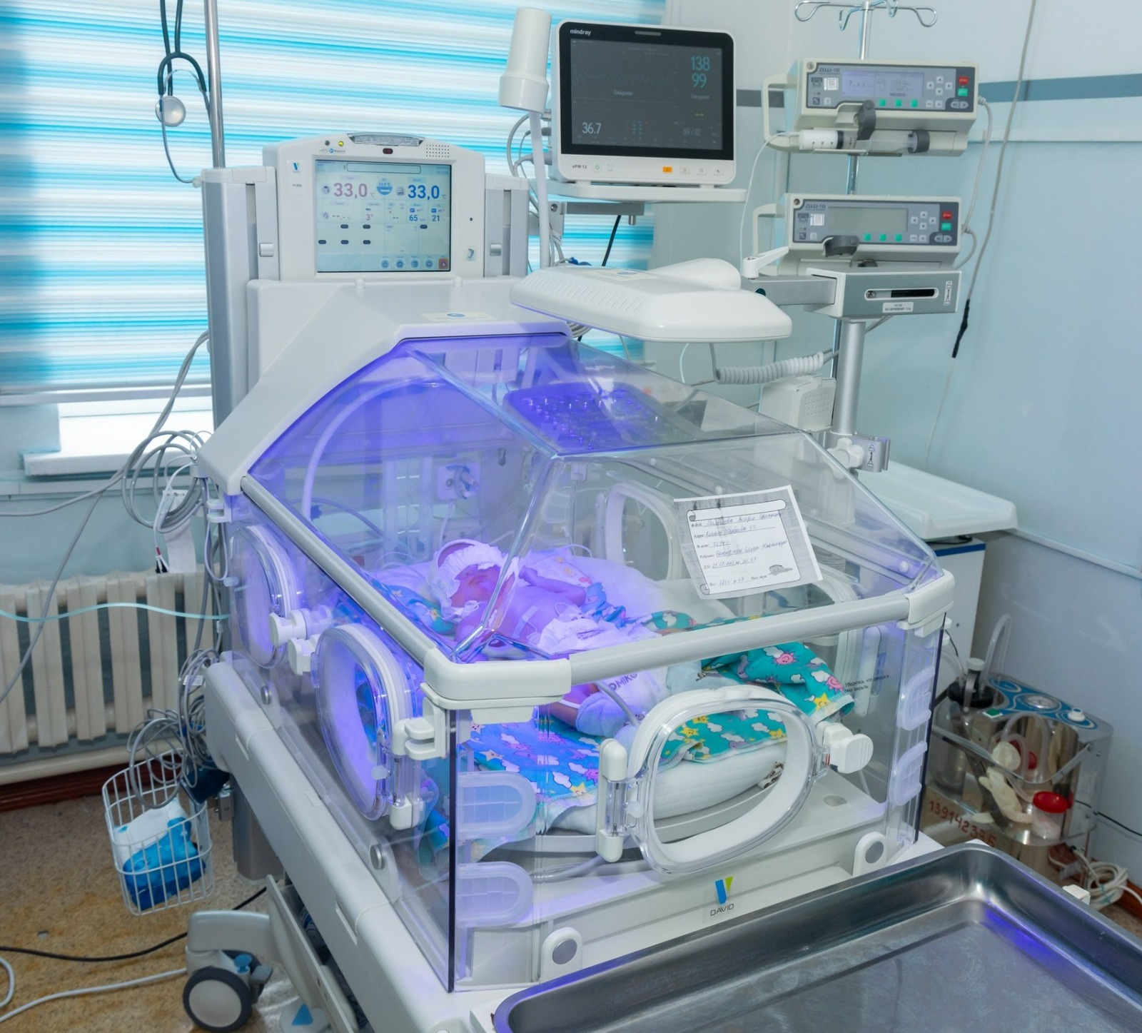 Понимая, что каждая минута без необходимой поддержки реанимационными аппаратами может стоить ребенку жизни, фонд начал искать партнера. И уже в сентябре реанимация роддома была полностью оснащена. Неонатологи получили 22 единицы оборудования – аппараты искусственной вентиляции легких и СИПАП, инкубаторы, мониторы пациентов, реанимационные столики и лампы фототерапии. Врачи прошли обучение у Бектургана Карина, главного внештатного неонатолога страны, и отделение заработало в новом режиме.