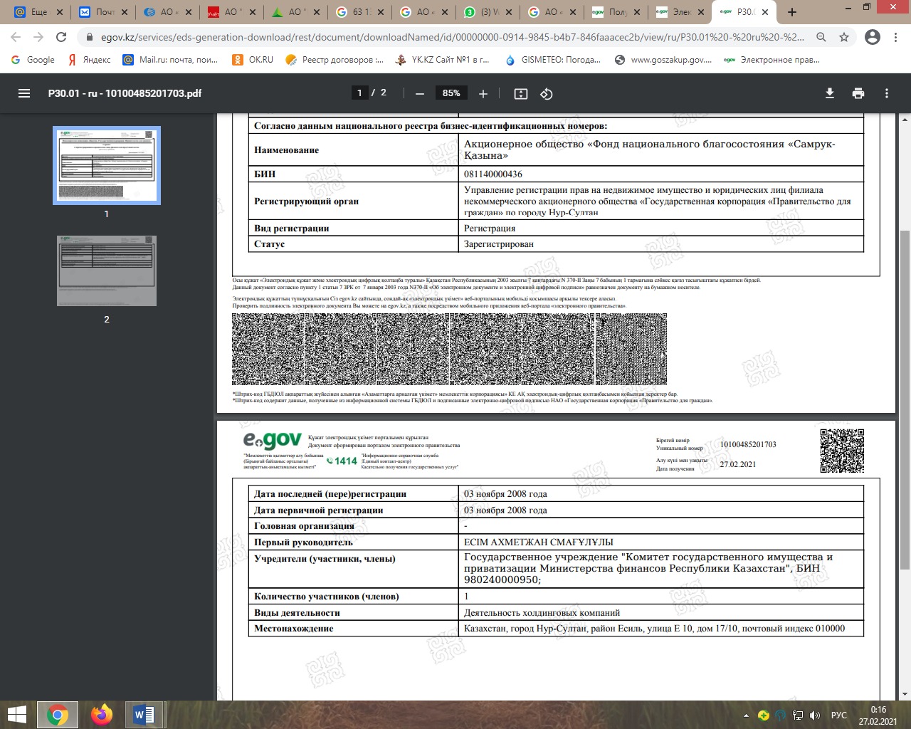 По информации uchet.kz, сумма налоговых отчислений в бюджет акционерного общества с 2010 по 2015 годы варьировалась в пределах 3-11 млн тенге, 2015-2019 годы были для компании очень успешными, судя по тому, что налоговые отчисления составили 24,3 млрд, 28,1 млрд, 30,5 млрд тенге, 31 млрд, 33,6 млрд тенге. В 2020 году наблюдается небольшое снижение – 25,6 млрд тенге. За два месяца 2021 года выплачено 2,6 млрд тенге.