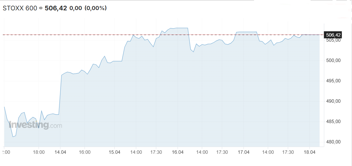 Индекс Stoxx Europe 600 понизился на -0,13% - до 506,42 пункта. За неделю индикатор набрал +19,62 пункта или +4,03%.