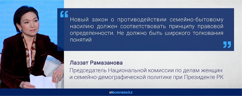 "Гражданские активисты привлекались в разработку закона о противодействии семейно-бытовому насилию с самого начала. Были задействованы эксперты, общественные организации, представители кризисных центров в регионах страны. Обсуждение продолжается и сегодня, в рамках рабочей группы Мажилиса Парламента. Все конструктивные предложения – принимаются во внимание", - отметила глава Нацкомиссии.