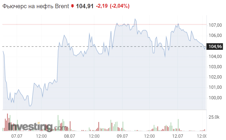 В ходе сегодняшней торговой сессии марка Brent теряет чуть более 2% котировок, падая ниже 105 долларов за баррель. Тем не менее, по итогам последних семи дней цены на нефть практически не изменились. На графике заметно, как в конце прошлой недели была просадка цен ниже психологической отметки в 100 долларов за баррель, что произошло впервые с апреля 2022 года. Такой спад связан со значительным увеличением запасов сырой нефти в США. По данным Информационного агентства энергетики (EIA), американские запасы выросли сразу на 8,23 млн баррелей, при то что первоначально ожидалось снижение на 1,04 млн баррелей. Это увеличение стало наиболее масштабным с середины мая.