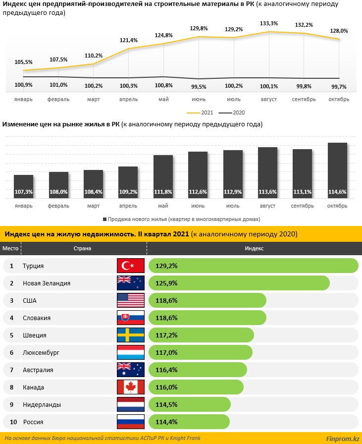В Казахстане прослеживается аналогичная ситуация. Так, в октябре текущего года цены на новое жилье показали повышение на 14,6% за год, при этом темпы удорожания продолжают расти.