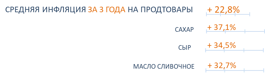 Статистические данные за последние три года показывают подорожание импортных товаров почти на треть – это сахар, масло сливочное, сыры и др.