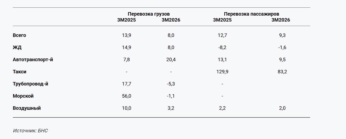 Перевозки пассажиров также замедлились, хотя сегмент такси сохранил высокие показатели за счет расширения учета ранее теневого рынка. При этом на фоне роста транзитного значения страны, в том числе по коридору "Китай — Европа", эксперты считают целесообразным выделять транзит в отдельную статистическую категорию, поскольку его вклад пока выглядит сравнительно небольшим.