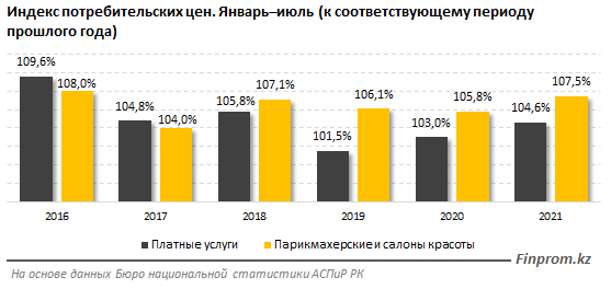 Цены на платные услуги в целом по итогам января-июля текущего года увеличились по сравнению с аналогичным периодом прошлого года на 4,6% – самый высокий показатель за последние 3 года. При этом непосредственно цены на услуги парикмахерских и салонов красоты выросли на 7,5% к январю-июлю 2020 года, что стало самым высоким ростом за последние 5 лет.