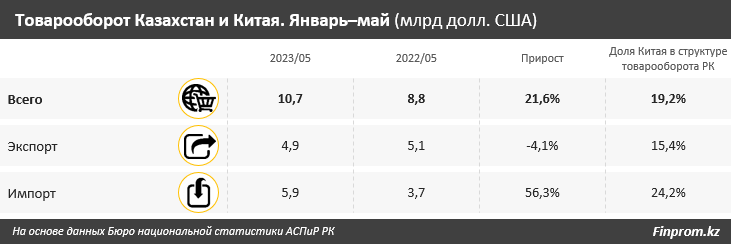 Импорт вырос на 56,3%, до 5,9 млрд долларов. Доля Китая в структуре импорта страны составила 24,2%.