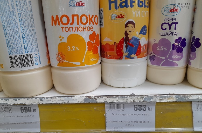 В сетях одного из ретейлеров цена в розницу указанных СЗПТ снизилась до 299 и 327 соответственно. А вот вся остальная линейка молочной продукции дорожает практически еженедельно. Молоко 3,2% в пластиковой бутылке только с начала года поднималось в цене трижды с 545 до 585 тенге в фирменных киосках молочной компании. В сетях цена на данный продукт доходит до 663 тенге за бутылку.