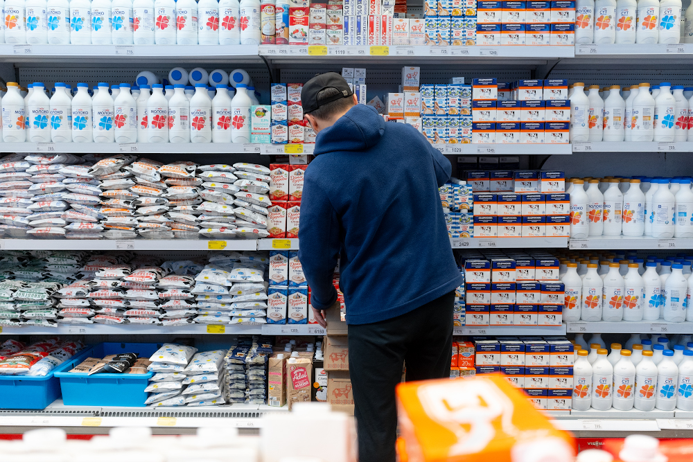 В "молочной" части перечня социальных продуктов фиксируется снижение цен на молоко и сыр и рост цен на сливочное масло и творог. Пакет молока объемом 0,5 литра с жирностью 2,5% вместо 519 тенге теперь можно купить за 385 тенге, а килограмм сыра обойдется посетителю супермаркета в 8338 тенге вместо 9330 тенге, как было во второй декаде марта.