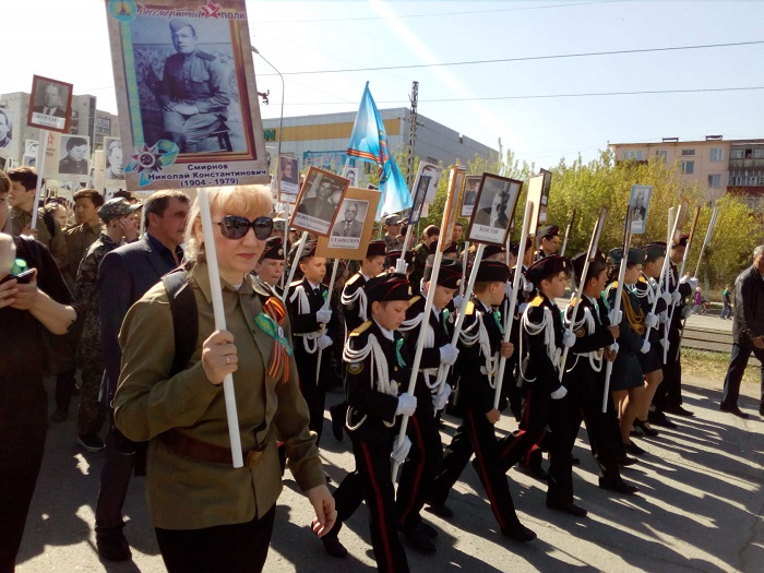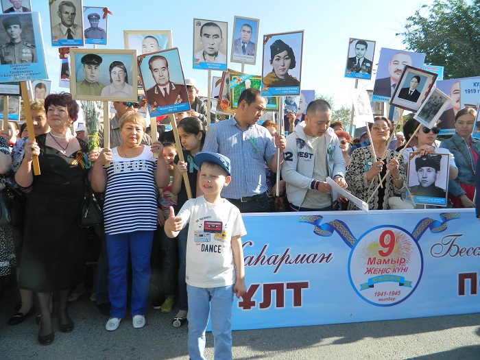 В Уральске "Бессмертный полк" собрал около 7 тыс. потомков солдат Великой Отечественной войны. С портретами предков, воевавших на фронтах, уральцы вышли на проспект Достык-Дружбы и каждый из них рассказывал свою историю войны, связанную с дедами, бабушками, прадедами. Многие готовились к этому шествию заранее, оформили соответствующей символикой портреты, сшили военизированные костюмы взрослым и детям, некоторые раздобыли даже каски.