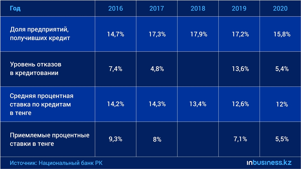 Так, в I квартале 2016 года доля предприятий, обратившихся в банк за кредитом, составила 22,1%. При этом доля предприятий, получивших кредит (в том числе очередной транш по ранее открытой кредитной линии), снизилась до 14,7. Увеличился уровень отказов в кредитовании: доля предприятий, которым было отказано в кредите, увеличилась до 7,4%. Также увеличилась доля крупных предприятий, не получивших кредит, до 8,4%.