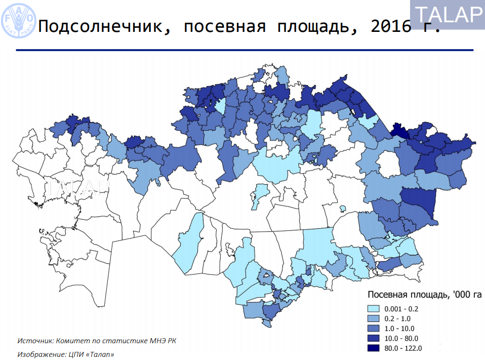 Если раньше подсолнечник больше засевался в ВКО и Алматинской области, то сейчас его все больше производят на севере, в западных регионах и на юге.