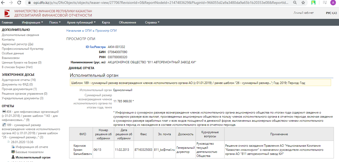 По итогам января текущего года в Депозитарий финансовой отчетности (ДФО) Министерства финансов Казахстана свои отчеты о вознаграждении своих руководителей направили шесть компаний. Это следует из отчетности ДФО по состоянию на 31 января этого года.
