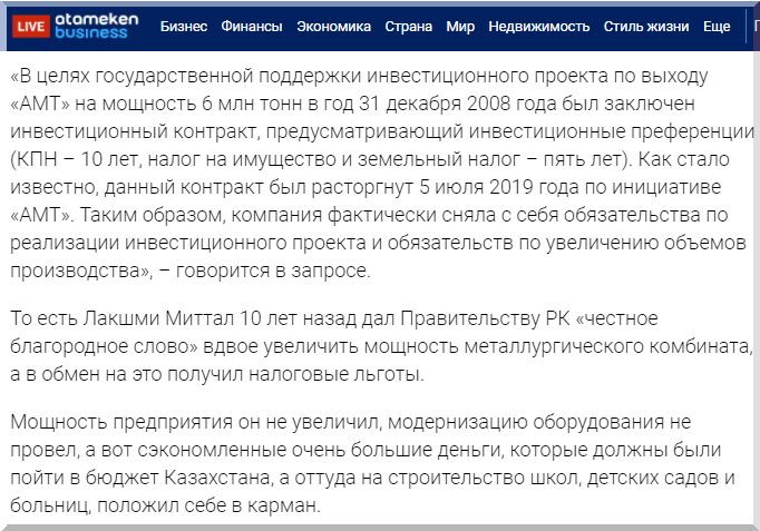 Помнится, в Казахстане Миттал тоже собирался построить суперкомбинат.