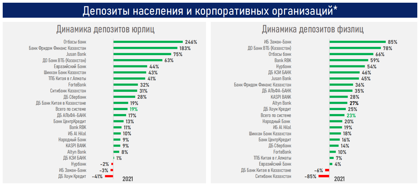- Так, на фоне высокого спроса на заёмные ресурсы ввиду быстрого восстановления экономической активности ссудный портфель БВУ вырос на 28% или 4,4 трлн тенге.