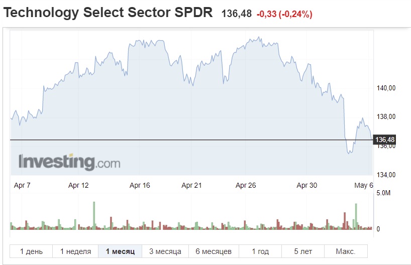 Рост ETF технологического сектора в течение месяца и резкий спад в последнюю неделю