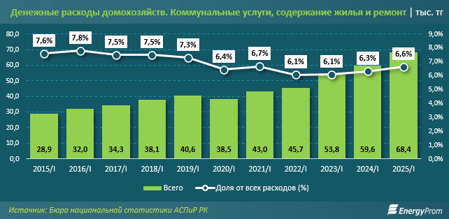 Теперь, изучив информацию международных аналитиков, посмотрим, что говорит казахстанская статистика. Согласно данным БНС, расходы среднестатистического казахстанского домохозяйства на коммунальные услуги, содержание и ремонт жилья составили 68,4 тыс. тенге за первый квартал текущего года (или около 23 тыс. тенге в месяц). К слову, с учетом того, что в эту сумму входят содержание и ремонт жилья, данные выглядят достаточно похожими на те, что приводят эксперты Numbeo.