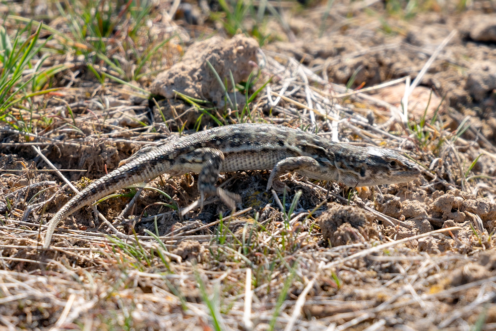 Иногда в поле зрения попадают и другие виды холоднокровных. Ради пары кадров пришлось побегать за этой шустрой ящеркой, которая пыталась скрыться под каждым кустиком в степи.