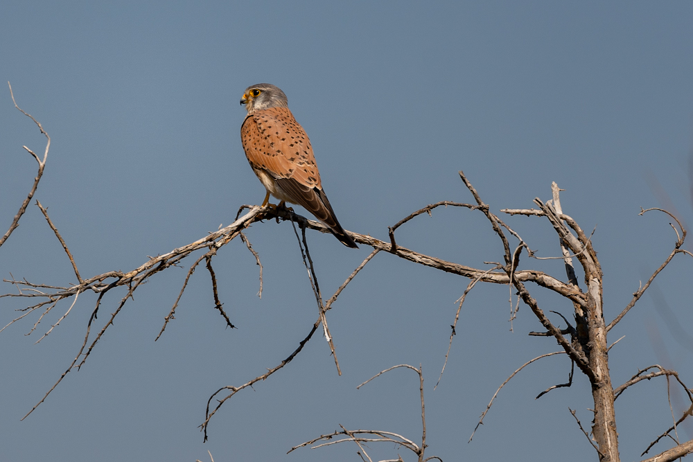 Конечно, за городом природа открывается наблюдателю совсем другими красками, но и здесь нужно чуть больше терпения и наблюдательности, чтобы увидеть представителей флоры и фауны Казахстана. Например, как в случае с этим небольшим соколом – пустельгой, который пролетел впереди над трассой и присел на ветки дерева, внимательно наблюдая за действиями человека.