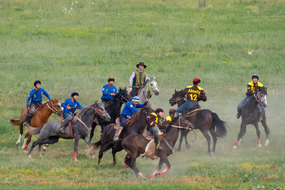 Главные мероприятия фестиваля развернулись на дорожках и траве ипподрома. Первыми в схватку вступили команды по кокпару, порадовав зрителей зрелищной борьбой.
