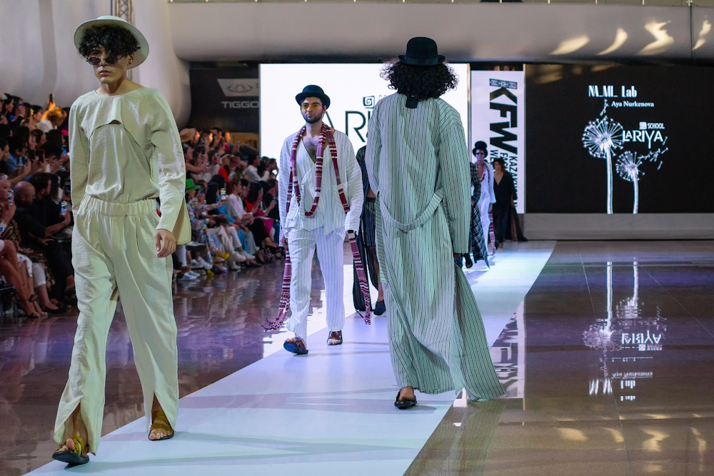 Школа моды LaRiya School, основанная известным казахстанским дизайнером Ларией Джакамбаевой, представила на показах две мужские коллекции – "Кролик в шляпе" от Айи Нуркеновой и бренда Na_Mi_Lab, и коллекцию "All Black Everything" бренда Cash-A-Lot от Славы Цой.