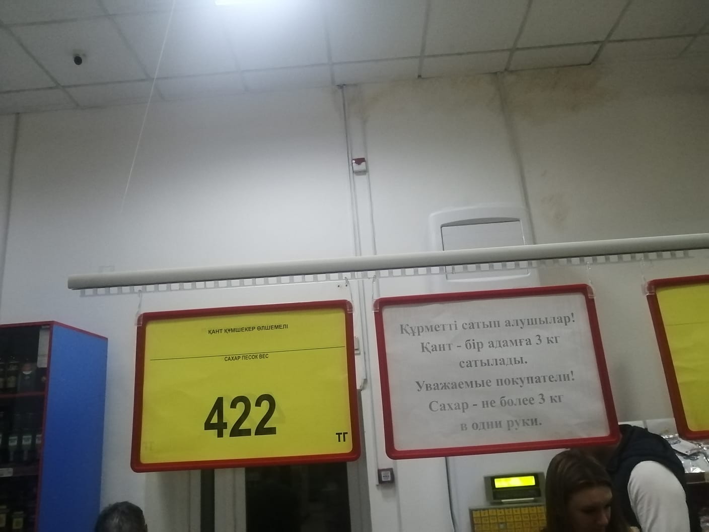 Сахар-песок постоянно присутствует в определенных супермаркетах, его продают по 422 тенге за кг не более трех кг в одни руки. Но в магазинах у дома его по-прежнему нет.