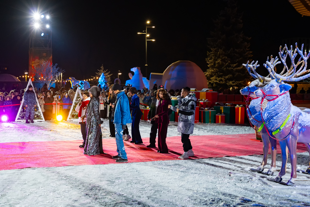Начало праздничного фестиваля было отмечено концертом, состоявшимся на импровизированной сцене у подножия 20-метровой искусственной ели, украшенной тысячами огней гирлянд. Несколько сотен горожан, несмотря на непогоду, с удовольствием пели новогодние песни вместе со звездами казахстанской эстрады.