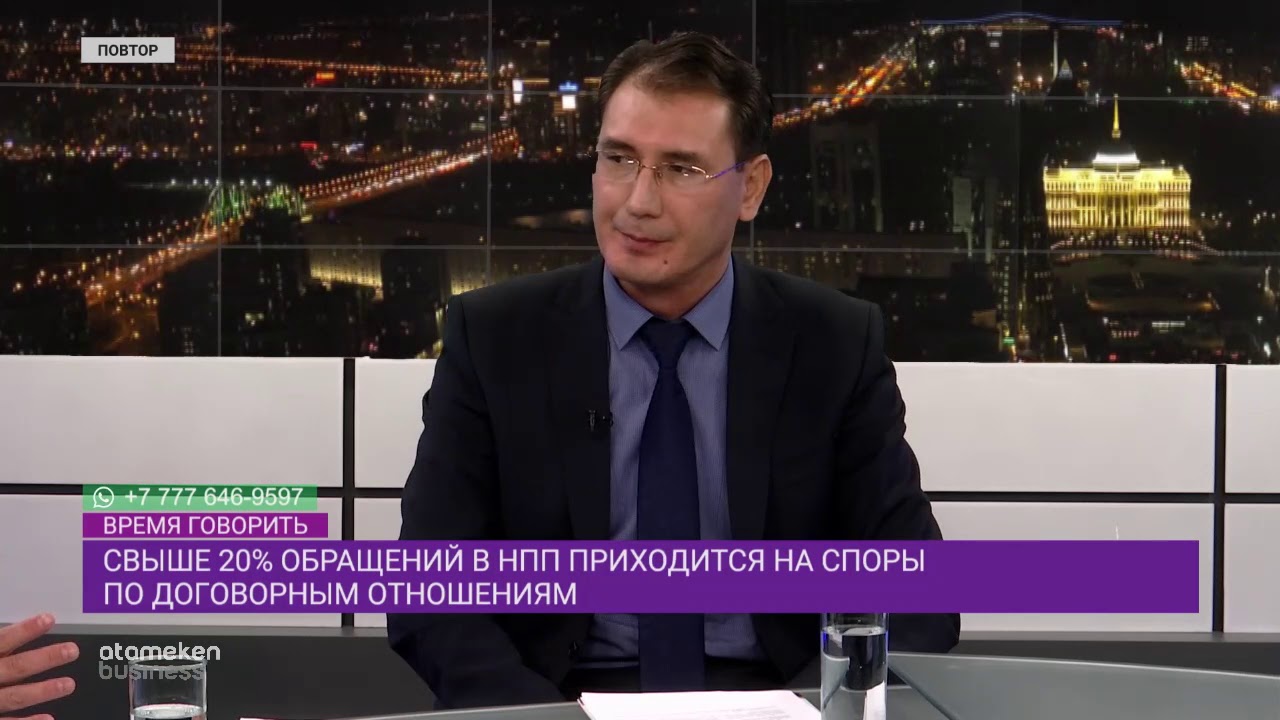 Гости программы: секретарь Совета по защите прав предпринимателей НПП РК "Атамекен" - Батыржан Ашитов; заместитель директора Департамента правовой защиты предпринимателей НПП РК "Атамекен" - Арман Хайдаров.