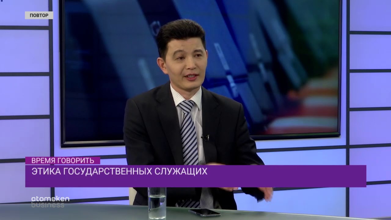 Гость программы: исполняющая обязанности директора Департамента контроля в сфере государственной службы АДГСПК РК - Мадина Наурызбек.