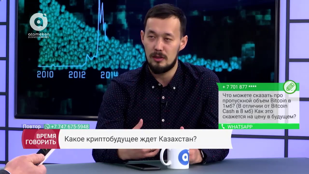 Гости программы: основатель сообщества Blockchain KZ - Батырбек Умаров и из студии Алматы председатель Казахстанской ассоциации блокчейна и криптовалют (КАБК) - Есет Бутин.