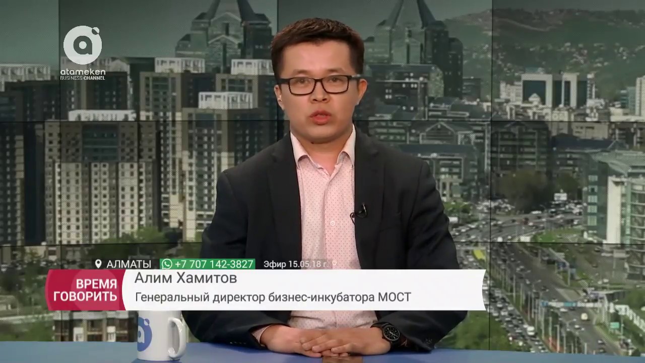 Гости программы: генеральный директор бизнес-инкубатора МОСТ - Алим Хамитов; заместитель председателя правления Национального Агентства по технологическому развитию - Омиржан Ташимов.