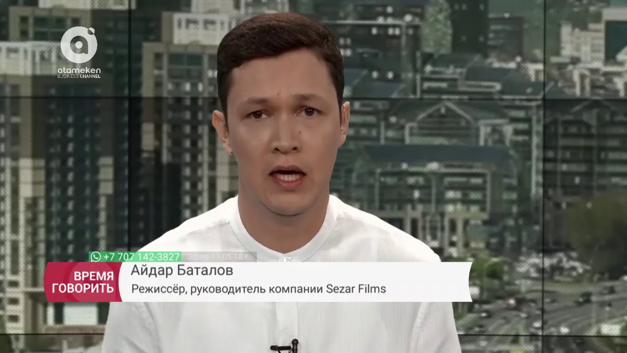 Гости программы: продюсер, режиссер, генеральный директор компании DAR PLAY - Ахат Ибраев; режиссер, руководитель компании Sezar Films - Айдар Баталов.