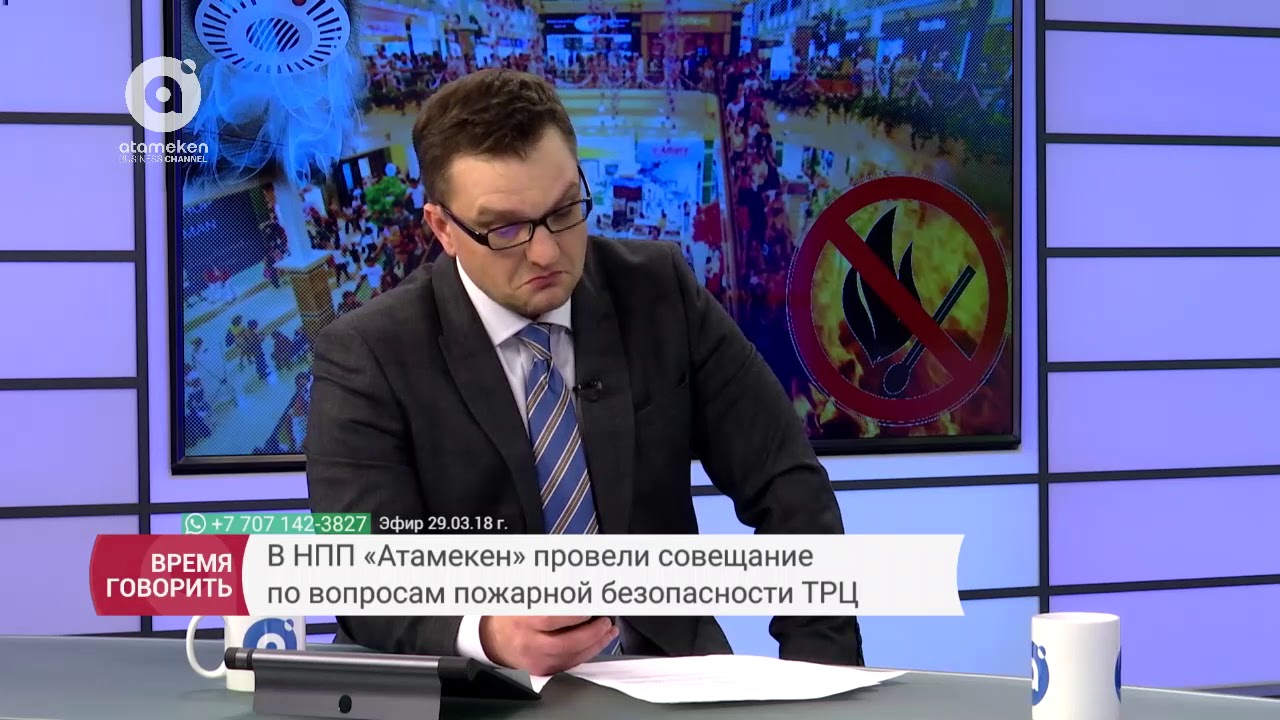 Гости программы: директор фирмы по технической и противопожарной безопасности - Валентин Маусынбаев, начальник отдела гос. пожарного контроля Упр. по ЧС района «Есиль» ДЧС г Астана - Талгат Каерлинов.
